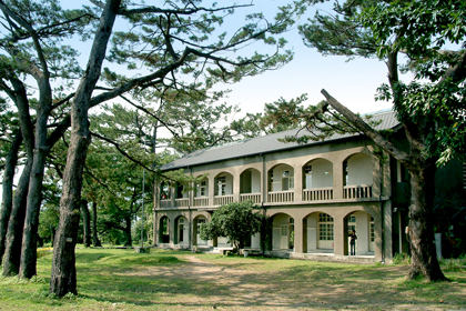 松園別館為花蓮縣僅存最完整的日據時代軍事建築物,內有日據時期之歷史建物共四棟,主體建築為折衷主義形式的磚木、RC混合二層洋樓建築,一、二層樓皆設拱廊,日本瓦頂。